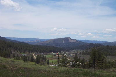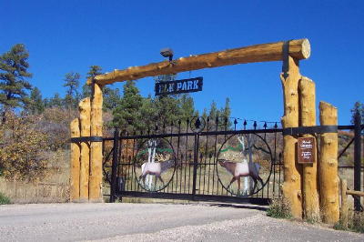 Directions: West on Hwy 160. The distinctive entry gate into Elk Park Meadows is visible on the right (north side of the highway).